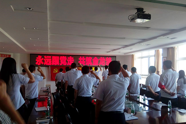 7月1日上午8:30,在中國共產(chǎn)黨成立94周年之際,湖北金龍集團(tuán)公司黨委組織新老黨員、入黨積極分子,在公司多功能會議室召開了黨員民主生活會,熱烈慶祝黨的生日。