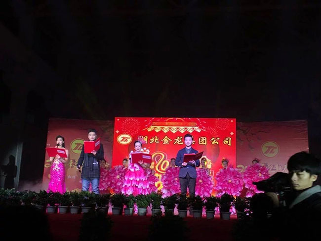 2月3日晚上6點,經過一個月的籌備,湖北金龍集團公司迎新春文藝晚會隆重拉開帷幕,公司所有職工及家屬共同享受了這場視覺盛宴。晚會節(jié)目都由公司員工結合公司產品和實際情況自編自演的,其中有用公司產品做成服裝的T臺秀、小品、三句半、相聲、書畫表演、二胡、舞蹈等近三十個節(jié)目,同時晚會期間公司領導發(fā)出了上萬元微信紅包,點燃現(xiàn)場員工及家屬的熱情,引來了公司附近很多群眾的觀看。